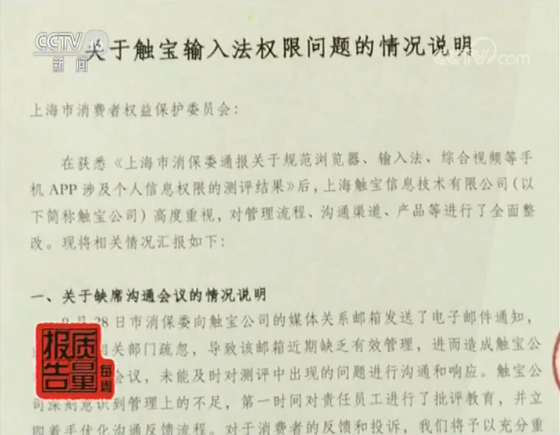 上海市消費者權(quán)益保護委員會副秘書長 唐健盛:我們都用了消費者跟企業(yè)溝通的一些渠道,也就是說它在App或者它的官網(wǎng)上面明示的一些郵箱傳真等等。但是我們非常遺憾地看到,這些通知很多企業(yè)都沒有得到足夠的重視,或者說我們這次也了解到,有些企業(yè)它根本和消費者溝通的郵箱可能是幾個月甚至于大半年都沒有去看過的。在隨后的媒體會上,上海市消保委正式通報了對18款手機應(yīng)用軟件App的評測結(jié)果,最終公布了“獵豹瀏覽器,觸寶輸入法和芒果TV視頻”這三款A(yù)pp申請權(quán)限存在找不到對應(yīng)功能等問題。據(jù)介紹, 直到這場媒體會之前,獵豹、觸寶和芒果TV這三家相關(guān)企業(yè)對于上海市消保委的多方聯(lián)系,始終沒有回應(yīng),也沒有出席相關(guān)的技術(shù)溝通會。