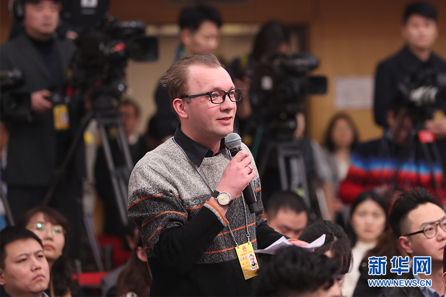 十三屆全國(guó)人大一次會(huì)議新聞中心于3月7日在梅地亞中心多功能廳舉行記者會(huì),邀請(qǐng)國(guó)務(wù)院扶貧辦主任劉永富就“打好精準(zhǔn)脫貧攻堅(jiān)戰(zhàn)”的相關(guān)問(wèn)題回答中外記者的提問(wèn)。圖為中俄頭條記者提問(wèn)。新華網(wǎng)/中國(guó)政府網(wǎng) 曲植 攝