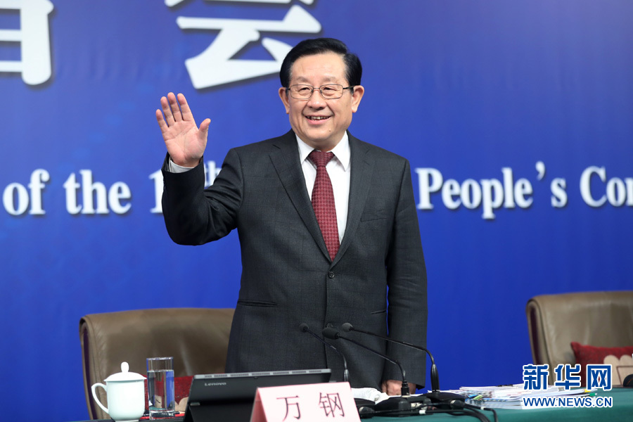 十三屆全國人大一次會議新聞中心于10日上午10時45分在梅地亞中心多功能廳舉行記者會,邀請科技部部長萬鋼、政策法規(guī)與監(jiān)督司司長賀德方、創(chuàng)新發(fā)展司司長許倞就“加快建設創(chuàng)新型國家”相關(guān)問題回答中外記者提問。圖為萬鋼向記者示意。新華網(wǎng)/中國政府網(wǎng) 翟子赫 攝