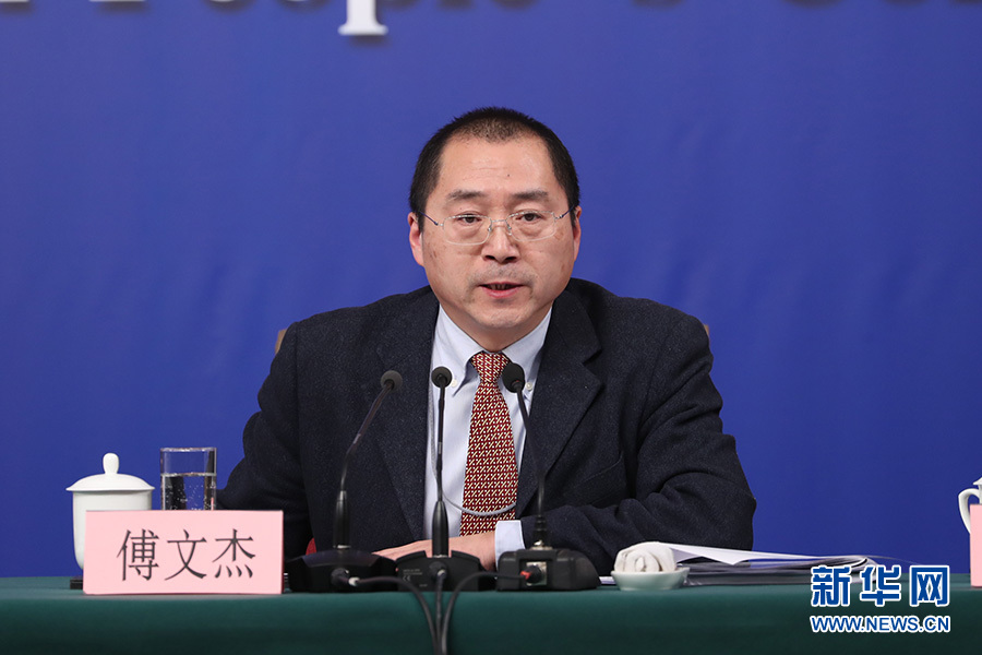 十三屆全國人大一次會議新聞中心于3月12日15時在梅地亞中心多功能廳舉行記者會,邀請十二屆全國人大財經(jīng)委副主任委員尹中卿、教科文衛(wèi)委副主任委員吳恒、環(huán)資委副主任委員袁駟、內(nèi)司委委員鄭功成,全國人大常委會預(yù)算工委副主任劉修文、常委會辦公廳秘書局巡視員傅文杰就“人大監(jiān)督工作”相關(guān)問題回答中外記者提問。圖為常委會辦公廳秘書局巡視員傅文杰回答記者提問。新華網(wǎng)/中國政府網(wǎng) 陳杰 攝