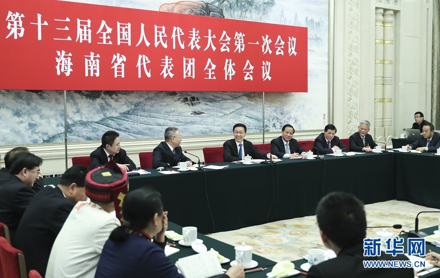 3月12日,中共中央政治局常委韓正參加十三屆全國人大一次會(huì)議海南代表團(tuán)的審議。