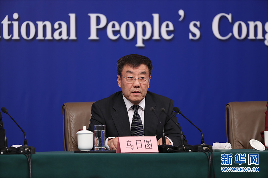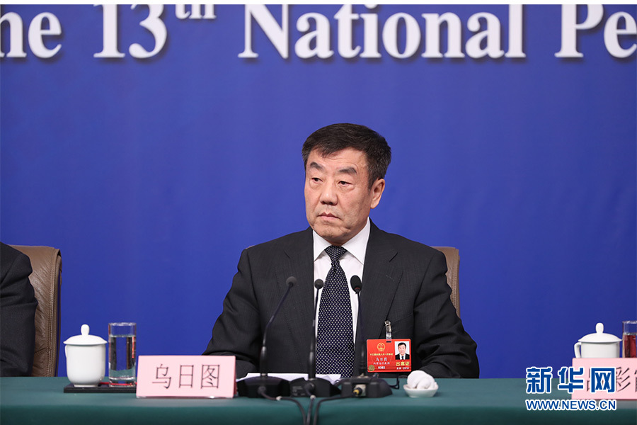 3月12日,十三屆全國人大一次會(huì)議新聞中心在梅地亞中心多功能廳舉行記者會(huì),邀請十二屆全國人大內(nèi)司委副主任委員王勝明、財(cái)經(jīng)委副主任委員烏日圖、教科文衛(wèi)委副主任委員吳恒、環(huán)資委委員呂彩霞,全國人大常委會(huì)法工委副主任王超英、副主任許安標(biāo)就“人大立法工作”相關(guān)問題回答中外記者提問。圖為財(cái)經(jīng)委副主任委員烏日圖回答記者提問。新華網(wǎng)/中國政府網(wǎng) 翟子赫 攝