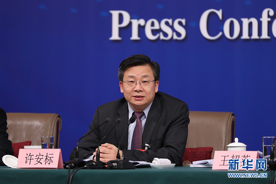 3月12日,十三屆全國(guó)人大一次會(huì)議新聞中心在梅地亞中心多功能廳舉行記者會(huì),邀請(qǐng)十二屆全國(guó)人大內(nèi)司委副主任委員王勝明、財(cái)經(jīng)委副主任委員烏日?qǐng)D、教科文衛(wèi)委副主任委員吳恒、環(huán)資委委員呂彩霞,全國(guó)人大常委會(huì)法工委副主任王超英、副主任許安標(biāo)就“人大立法工作”相關(guān)問(wèn)題回答中外記者提問(wèn)。圖為全國(guó)人大常委會(huì)法工委副主任許安標(biāo)回答記者提問(wèn)。新華網(wǎng)/中國(guó)政府網(wǎng) 翟子赫 攝