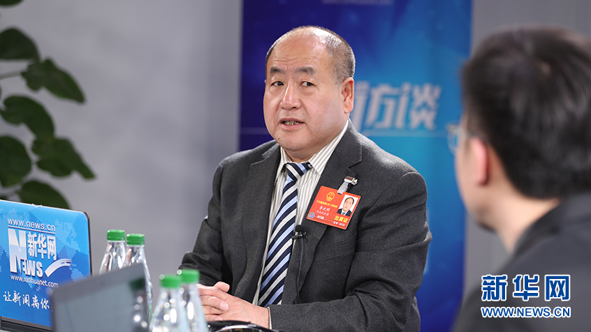 3月15日,全國人大代表、頸復康藥業(yè)集團董事長李沈明(左)做客新華網(wǎng)2018全國兩會特別訪談。新華網(wǎng) 郭小天攝