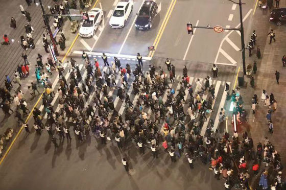 31日下午16時(shí)30分,前往外灘方向的游客不斷增多,警方在南京東路從河南中路到中山東一路段實(shí)行了機(jī)動(dòng)車單向禁止通行的管制措施。17時(shí)開(kāi)始,全面禁止南京東路(河南中路-中山東一路)段機(jī)動(dòng)車通行,只允許行人通行。