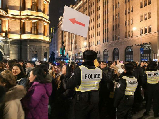 下午15時(shí)許,黃浦公安分局民警和增援安保工作的學(xué)警和武警共8600余名安保力量就已全部到崗,按照事先部署的安保方案嚴(yán)陣以待。此時(shí),南京東路往外灘的游客開(kāi)始聚集,警方在南京東路四川中路口、南京東路江西中路口實(shí)施交通管制,禁止機(jī)動(dòng)車輛通行。民警在現(xiàn)場(chǎng)放置了繞行提示版,提醒車輛繞行河南路,非機(jī)動(dòng)車輛繞行山東中路或山西中路。南京東路外灘、南京東路河南中路路口也沿用了保護(hù)行人過(guò)馬路安全的“人墻”——紅燈時(shí)攔住路口、綠燈時(shí)散開(kāi)在兩邊攔截車流護(hù)送人群過(guò)街的“開(kāi)關(guān)式”過(guò)馬路措施。