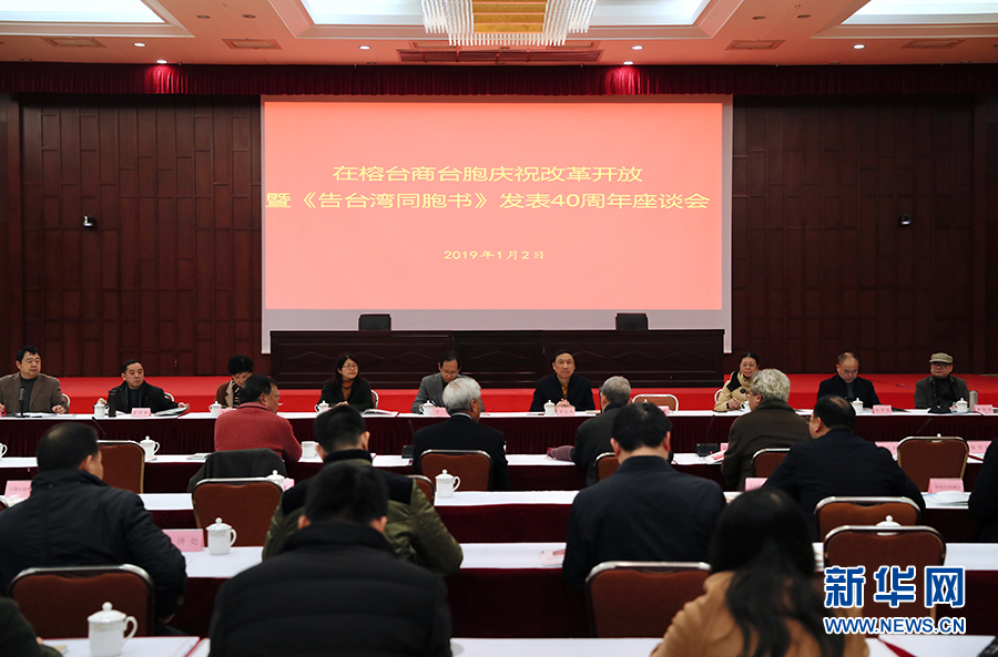 1月2日,在榕臺(tái)商臺(tái)胞慶祝改革開(kāi)放暨《告臺(tái)灣同胞書(shū)》發(fā)表40周年座談會(huì)在福州舉行。新華社記者 姜克紅 攝