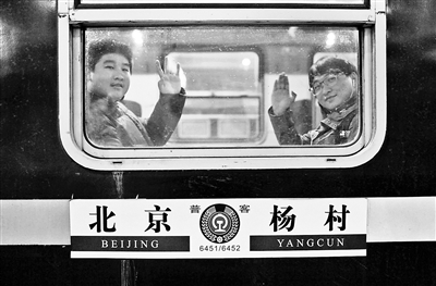 相比平時(shí)的車廂,最后一趟6451次多了不少車迷走來走去,有人忙著補(bǔ)票,有人忙著拍照。列車走行37分鐘到達(dá)黃村車站,北青報(bào)記者隨著二三十名乘客下車。列車停靠3分鐘,又有百余名乘客陸續(xù)上車,將5節(jié)車廂幾乎坐滿。一聲清脆的鳴笛后,6451次緩緩消失在了夜幕中。今天上午,6452次將從楊村開回北京站,這對(duì)老綠皮車將宣告停運(yùn)。