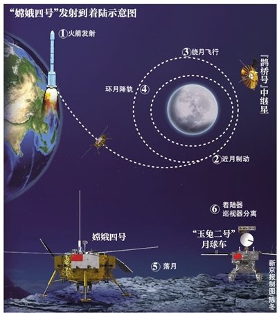 嫦娥四號去年12月8日搭乘火箭發(fā)射,12月12日進入環(huán)月軌道,12月30日進入月球背面著陸準備軌道。12月12日后,嫦娥四號進行了2次環(huán)月軌道修正,與“鵲橋號”中繼星進行了4次中繼鏈路測試,開展激光測距、三維成像等導(dǎo)航敏感器在軌測試。
