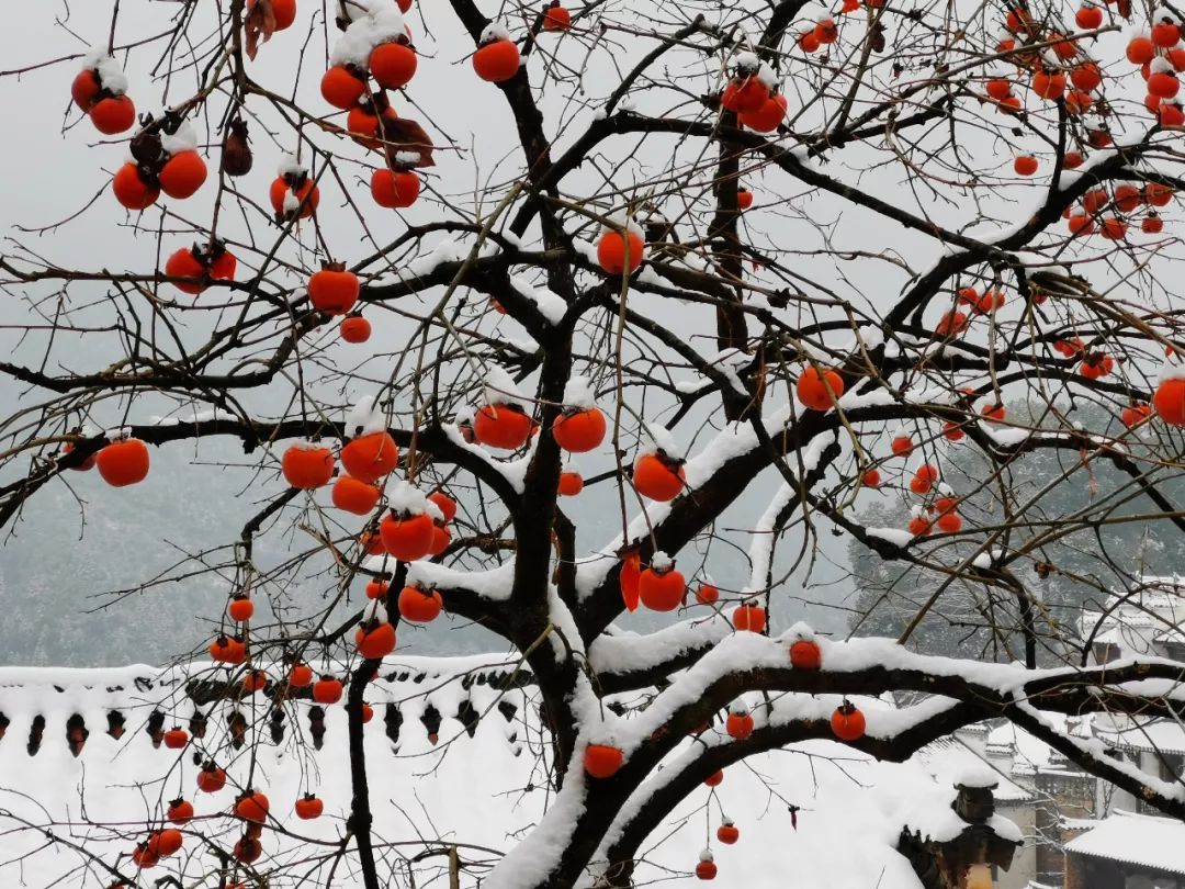 2018-12-31,江西婺源。在中國(guó)最美鄉(xiāng)村婺源,古村落篁嶺喜降瑞雪,滿樹的柿子如一個(gè)個(gè)小燈籠,紅紅火火,喜迎新年。作者:董立新
