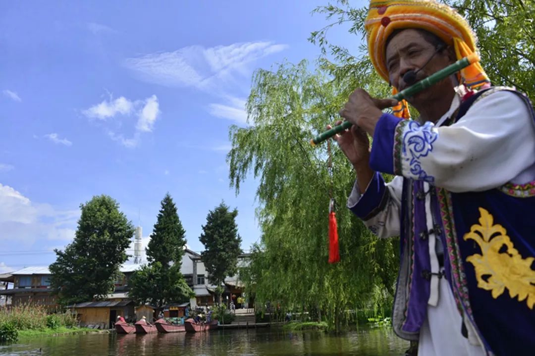 2018-07-15,云南大理洱海。白族老人正在吹竹笛。作者:德阿路旁
