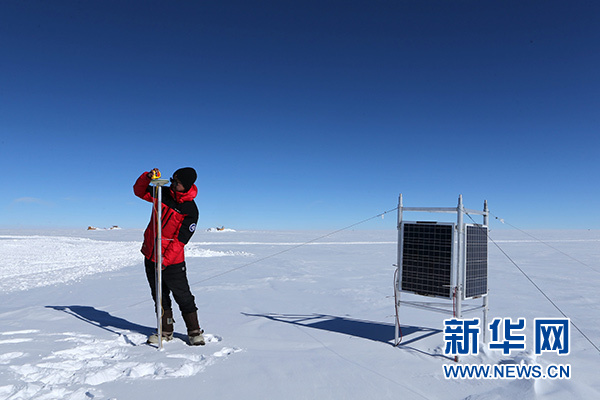 1月5日,科考隊(duì)員楊元德用GPS進(jìn)行冰流速測量。新華社記者 劉詩平 攝
