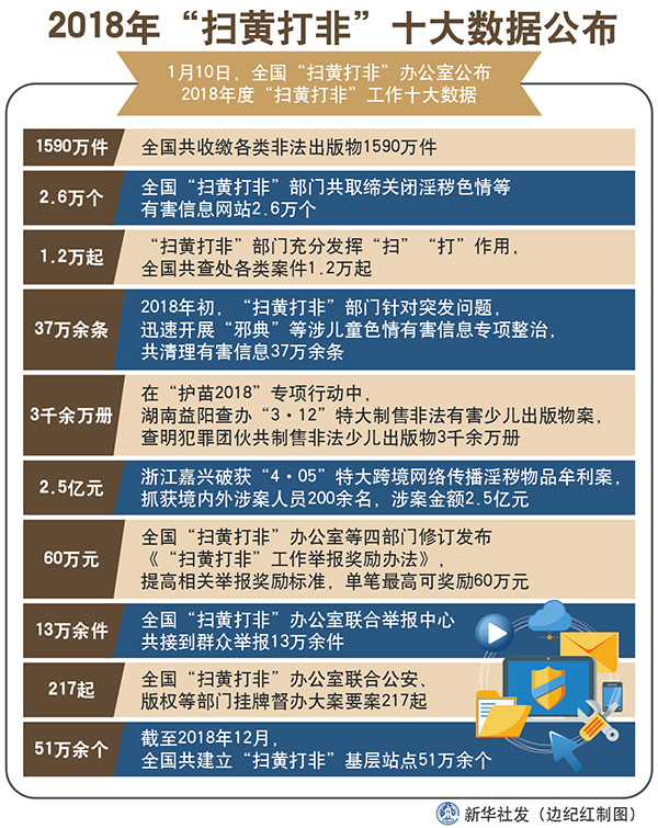 2018年“掃黃打非”十大數(shù)據(jù)發(fā)布