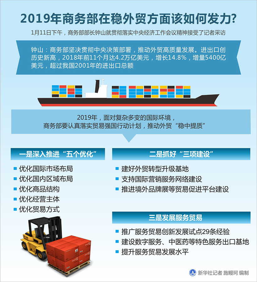 圖表:2019年商務(wù)部在穩(wěn)外貿(mào)方面該如何發(fā)力? 新華社記者 施鰻珂 編制