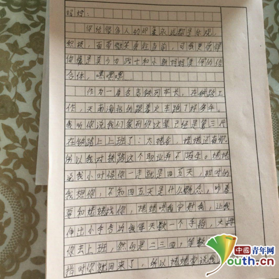 一年一度的春運(yùn)又開始了,13歲的女孩小嘉琪早已習(xí)慣了媽媽不能在家的春節(jié)。小嘉琪的媽媽是哈大高鐵車隊(duì)的列車長。今年她給媽媽寫了一封信,這封信里有埋怨、有理解、更有女兒對(duì)媽媽的愛……不禁讓人淚目。