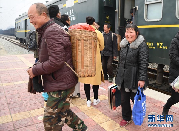 1月24日,乘客在8361次列車上咨詢農(nóng)產(chǎn)品價(jià)格。新華社記者 張博文 攝