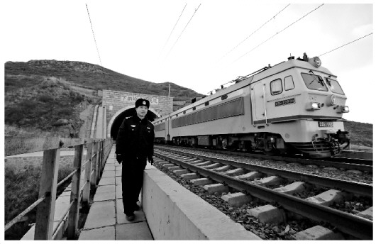 56歲的老民警朱效國(guó)已經(jīng)有些駝背了,但精神狀態(tài)很好。他介紹,下納嶺特大橋全長(zhǎng)3.8公里,橋離地面高度約50米,恐高的人可巡不完線路。冬季天冷倒不怕,就怕刮風(fēng),橋太高了,很危險(xiǎn)。只要不刮風(fēng)就是好天氣。我們巡線的目的就是,一是看線路上的設(shè)備有沒(méi)有損壞的,另一個(gè)就是看看有沒(méi)有危害火車(chē)安全的,有沒(méi)有山上滾下的落石和其他雜物,以保障列車(chē)通行安全。