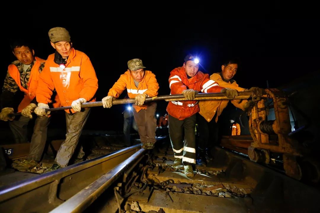 2019-01-25,江西南昌。凌晨?jī)牲c(diǎn),中國(guó)鐵路南昌局集團(tuán)有限公司南昌工務(wù)段的線路工們準(zhǔn)備檢修線路,護(hù)航春運(yùn)安全。作者:德權(quán)