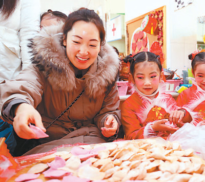 江蘇連云港一對(duì)母女在包餃子。司 偉攝(人民視覺(jué))