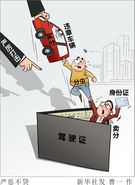 隨著私家車數(shù)量的持續(xù)快速增長,一些司機(jī)由于一年內(nèi)違章次數(shù)較多,自己駕照記分不夠扣,由此催生了交通違法記分非法買賣現(xiàn)象。其中,低價(jià)買分、高價(jià)賣分的“分蟲”,成為這條產(chǎn)業(yè)鏈上的關(guān)鍵。