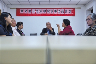 2016年5月,朝陽區(qū)霞光里,居民在居民議事廳討論。資料圖片/新京報(bào)記者 王嘉寧 攝