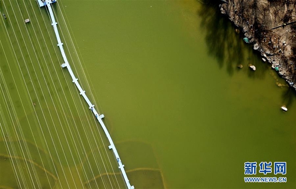 3月26日無人機拍攝的北京世園會園區(qū)里的一座棧橋。 新華社記者 金良快 攝