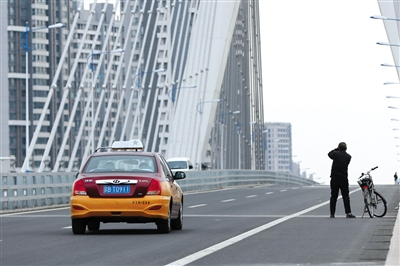 昨日,燕潮大橋上的車(chē)輛和行人。新京報(bào)記者 侯少卿 攝