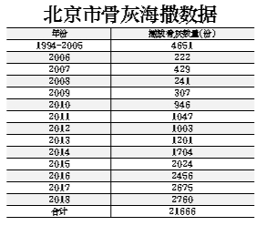 目前,以骨灰海葬、骨灰自然葬為代表的節(jié)地生態(tài)葬式已成為北京市骨灰安葬的主流。本市骨灰海葬活動(dòng)自1994年實(shí)施以來(lái),迄今已順利組織了485次,播撒骨灰21666份,服務(wù)逝者家屬67887人次,僅2018年就組織骨灰撒?;顒?dòng)70批次,播撒骨灰2760份,參加活動(dòng)家屬11160人,在全國(guó)居于領(lǐng)先地位。“十三五”末,骨灰海葬量預(yù)計(jì)將達(dá)到北京市年火化總量的4%。