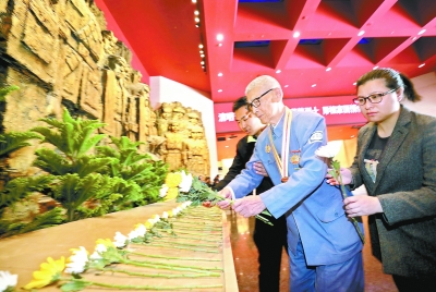 昨天,在中國(guó)人民抗日戰(zhàn)爭(zhēng)紀(jì)念館,老戰(zhàn)士代表、首都大中小學(xué)學(xué)生、部隊(duì)官兵等向革命先驅(qū)獻(xiàn)花。本報(bào)記者 饒強(qiáng)攝