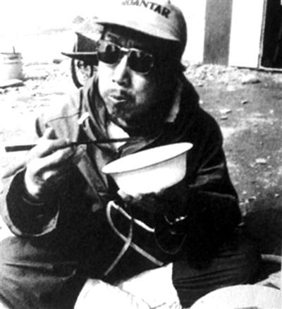 長城站建設時環(huán)境十分艱難,郭琨席地而坐就餐。
