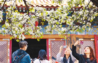 春日里,游客在故宮的梨花樹(shù)下拍照。祝振強(qiáng)攝