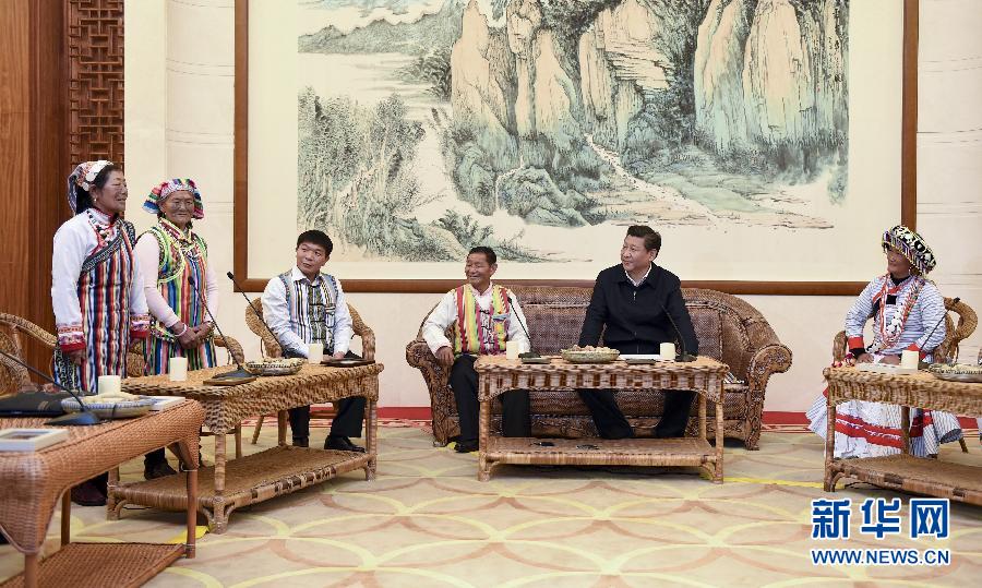 2015年1月20日,習(xí)近平在昆明親切會(huì)見怒江州貢山獨(dú)龍族怒族自治縣干部群眾代表
