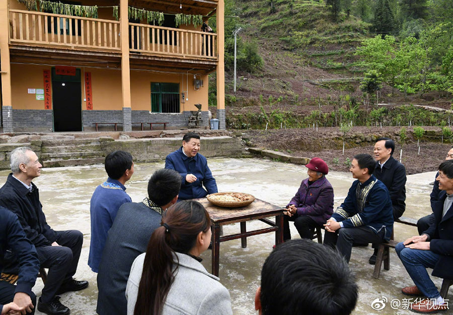4月15日,習近平總書記赴重慶考察調研。一下飛機,他就轉乘火車、汽車前往石柱土家族自治縣中益鄉(xiāng)小學、華溪村,深入農(nóng)戶家中和田間地頭,實地了解脫貧攻堅工作進展和解決“兩不愁三保障”突出問題情況。?