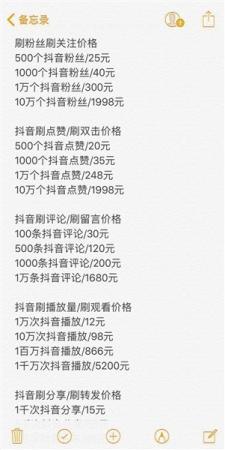 抖音刷粉、點贊等“業(yè)務”收費價格。