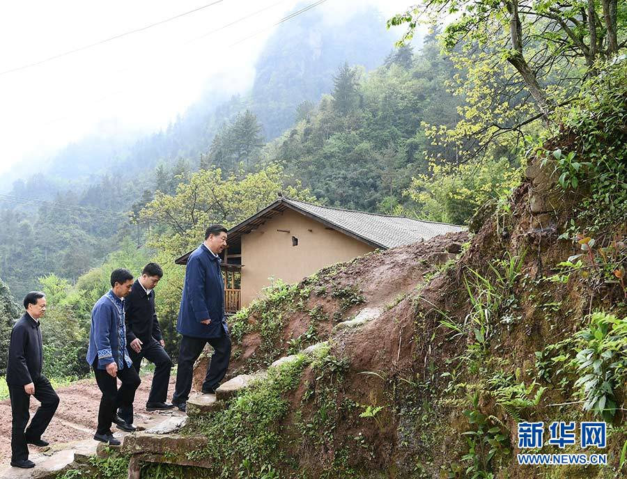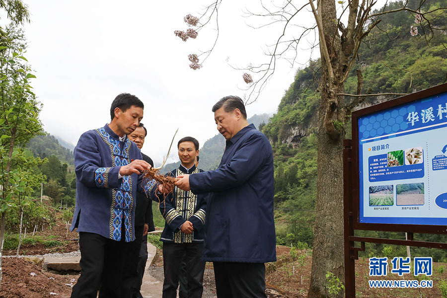 走訪一家脫貧戶,他沿著鄉(xiāng)間小路步行察看自然環(huán)境、村容村貌,了解該村通過種植中藥材黃精等特色經(jīng)濟作物帶動村民脫貧的情況。