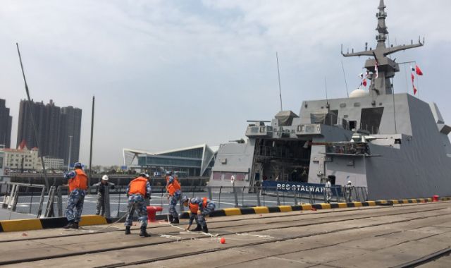 19日10時許,新加坡海軍“堅強”號護衛(wèi)艦緩緩駛入青島大港碼頭。這是參加中國人民解放軍海軍成立70周年多國海軍活動到訪的第一艘外國海軍艦艇。新華社記者梅世雄 攝
