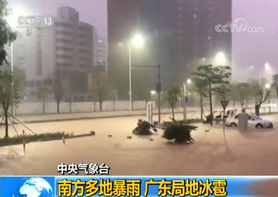 中央氣象臺(tái)監(jiān)測顯示,昨天廣東、廣西、福建、江西、湖南等地部分地區(qū)出現(xiàn)暴雨或大暴雨;廣東中部和珠江口附近還伴有8~10級雷暴大風(fēng),局地出現(xiàn)冰雹。