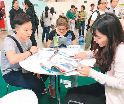 香港學(xué)生在“內(nèi)地高等教育展”上咨詢高校招生情況。資料圖片