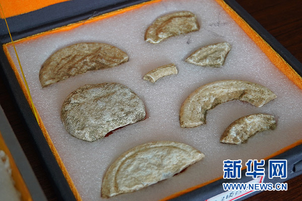 這是黃山遺址發(fā)掘出土的石鉆頭、石鑿、拋光器等制玉工具(4月29日攝)。新華社記者 桂娟 攝