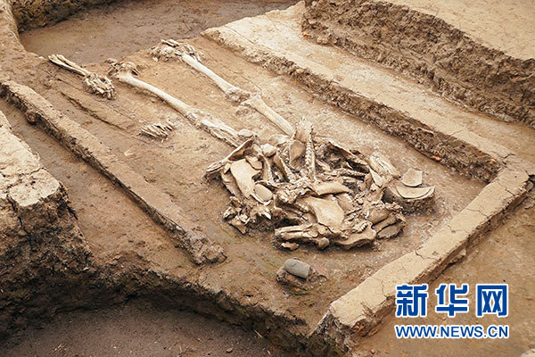這是黃山遺址發(fā)現(xiàn)的疑似屈家?guī)X文化氏族首領的高等級墓葬(4月29日攝)。 新華社記者 袁月明 攝