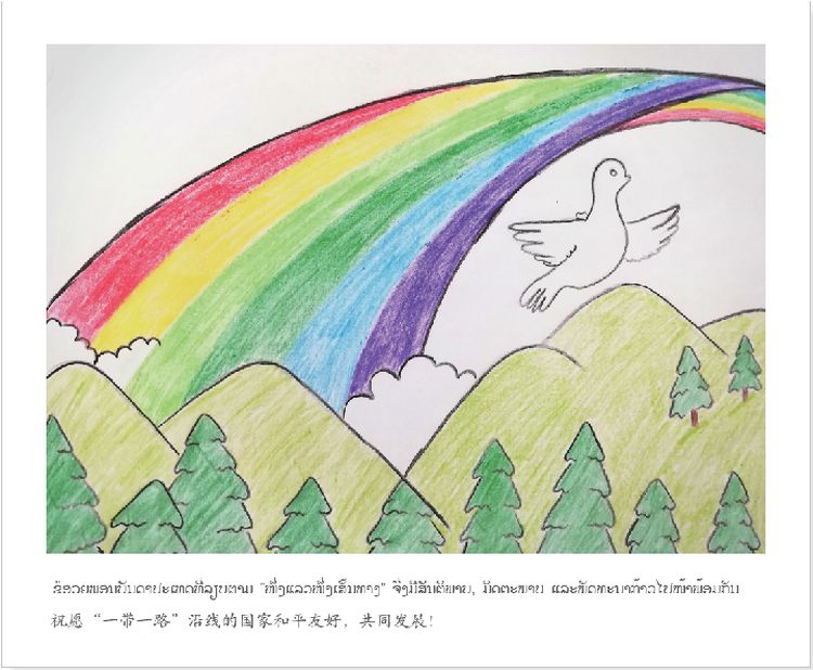 58幅天真爛漫的畫作,寓意中老建交58周年的深情厚誼。孩子們希望通過畫中的學(xué)校、家鄉(xiāng)、世界和夢想,展示“一帶一路”為他們的生活帶來的變化,與習(xí)近平主席分享心中滿滿的喜悅和幸福。