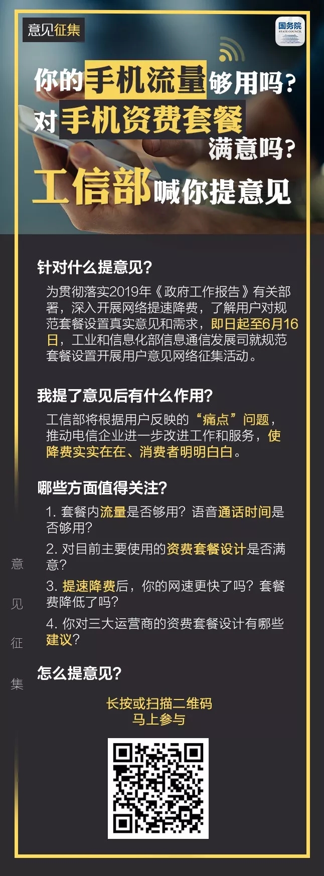 你的手機(jī)流量夠用嗎?對手機(jī)資費套餐滿意嗎?工信部喊你提意見