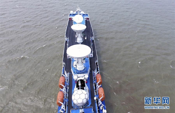 6月8日,遠望3號船起航赴南太平洋執(zhí)行測控任務(wù)(無人機拍攝)。新華社記者 劉詩平 攝