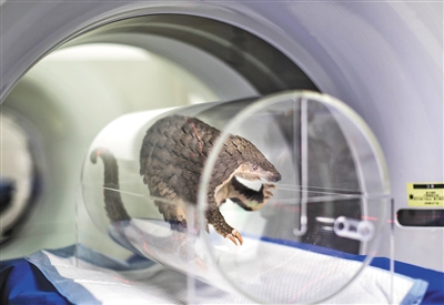 3月底,廣東野生動(dòng)物救護(hù)中心接收了一批由海關(guān)查沒(méi)的走私穿山甲。圖為一只被救護(hù)的穿山甲在動(dòng)物醫(yī)院做CT檢查。受訪(fǎng)者供圖