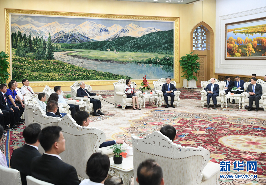 6月28日,中共中央政治局常委、全國政協(xié)主席汪洋在北京會見臺灣兩岸和平發(fā)展論壇榮譽顧問高金素梅率領(lǐng)的臺灣民意代表和少數(shù)民族參訪團。 新華社記者 申宏 攝