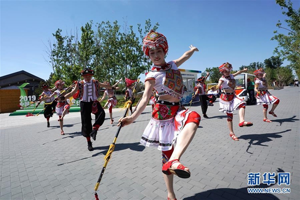 7月4日,演員在“湖北日”活動(dòng)上表演舞蹈。當(dāng)日,2019年中國北京世界園藝博覽會(huì)“湖北日”活動(dòng)在北京世園會(huì)園區(qū)舉行。新華社記者 鞠煥宗 攝