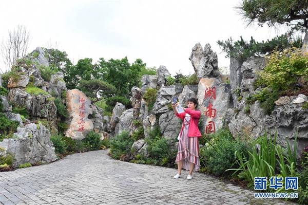 7月7日,游客在湖南園中參觀。當日,2019年中國北京世界園藝博覽會“湖南日”活動在北京世園會園區(qū)舉行。新華社發(fā)(任超 攝)