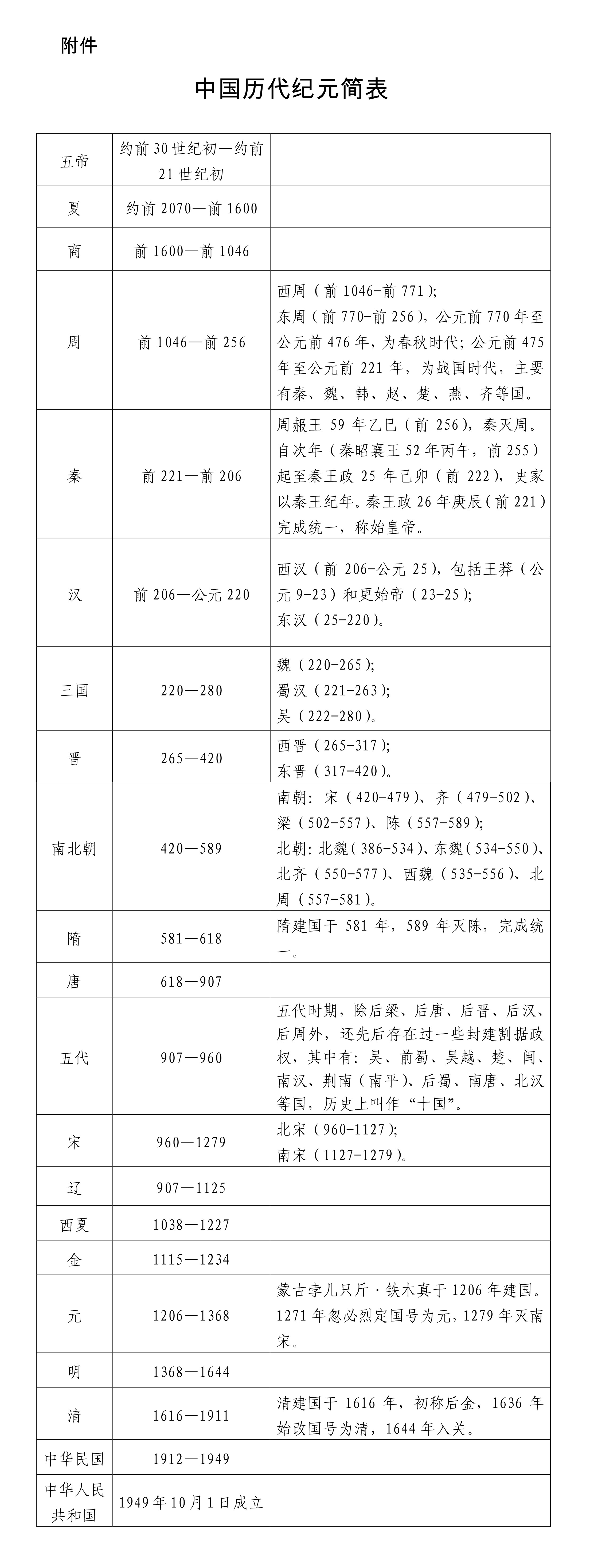 附件:中國歷代紀(jì)元簡表