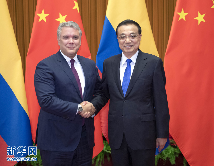 7月31日,國務院總理李克強在北京人民大會堂會見來華進行國事訪問的哥倫比亞總統(tǒng)杜克。 新華社記者 李濤 攝