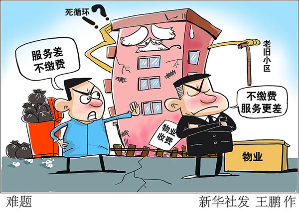垃圾隨意丟棄、車輛亂停亂放、流動(dòng)商販隨意出入……當(dāng)前,有的老舊小區(qū)根本沒有物業(yè)管,有的物業(yè)管得很差。一些居民因物業(yè)“服務(wù)差”不繳費(fèi),而物業(yè)也往往以“入不敷出”為由敷衍了事。